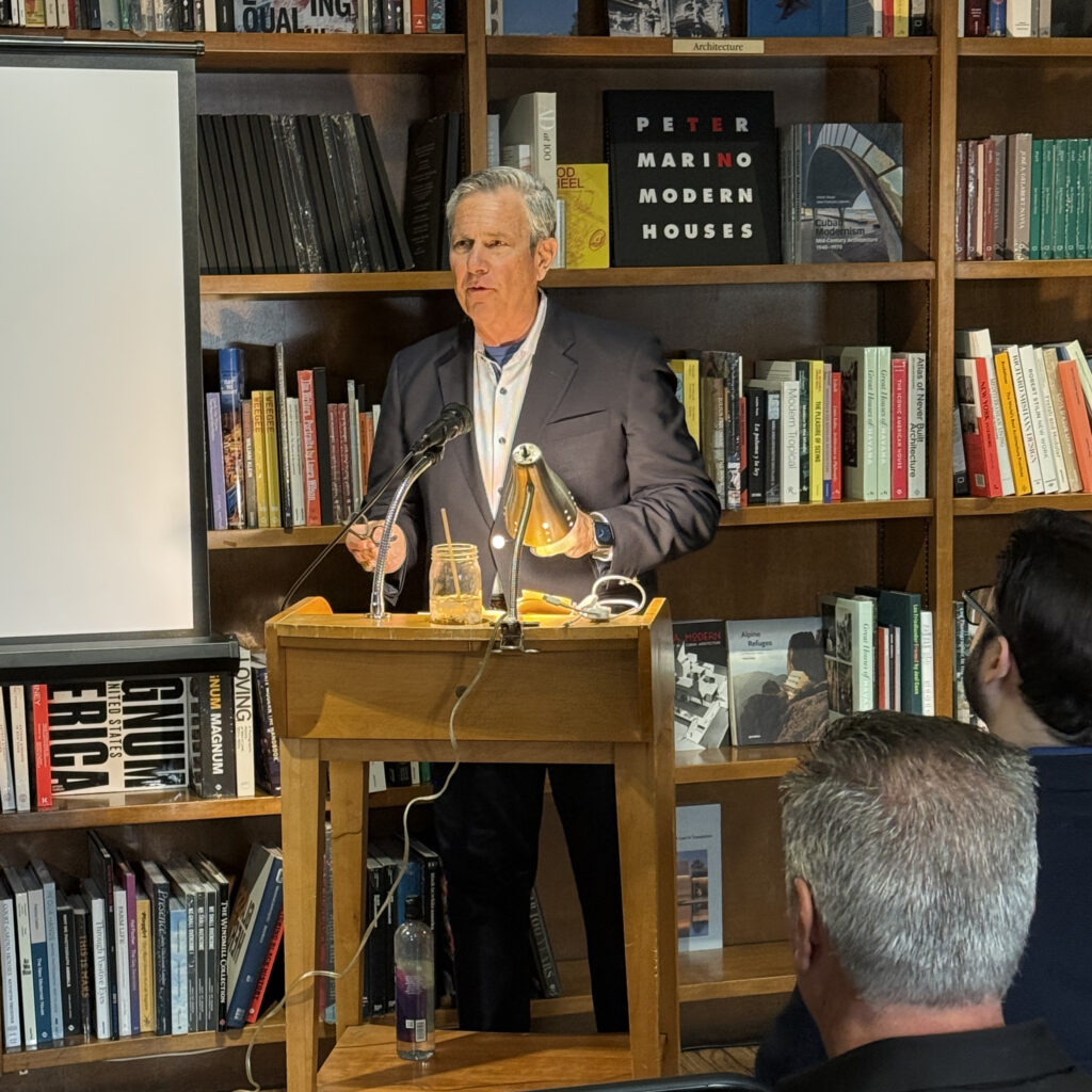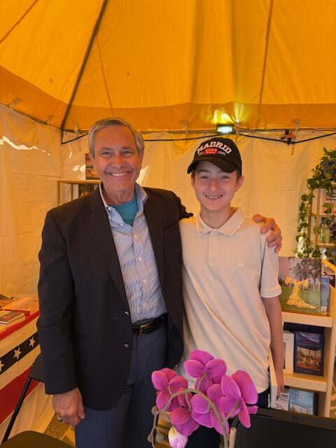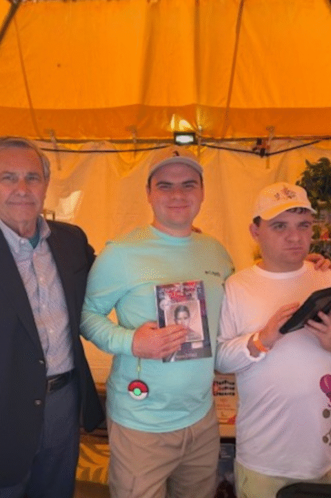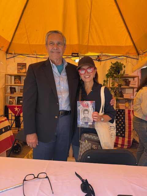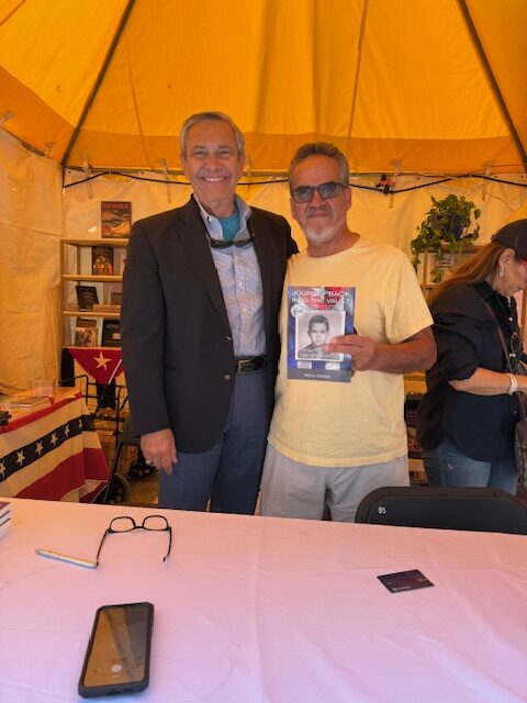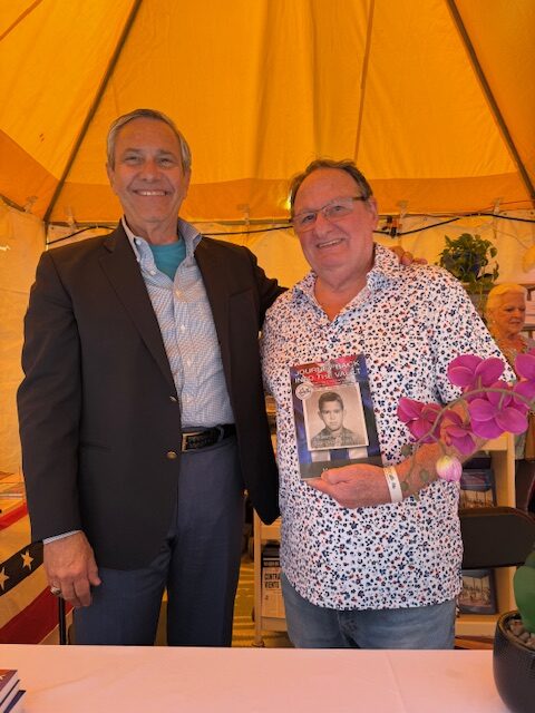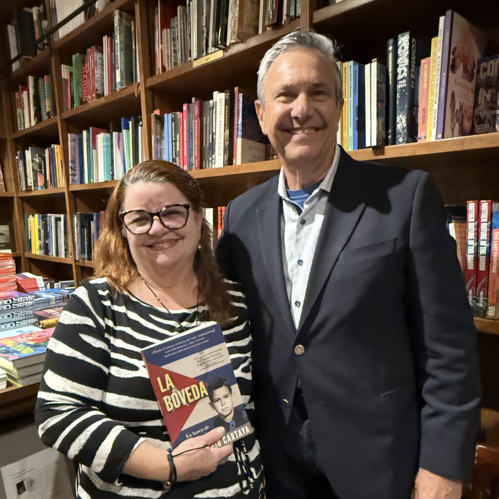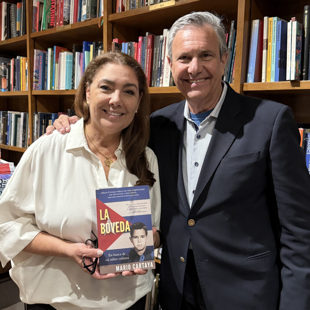 Mario giving a dedicated and signed book to retired Miami Herald Publisher and author David Lawrence.