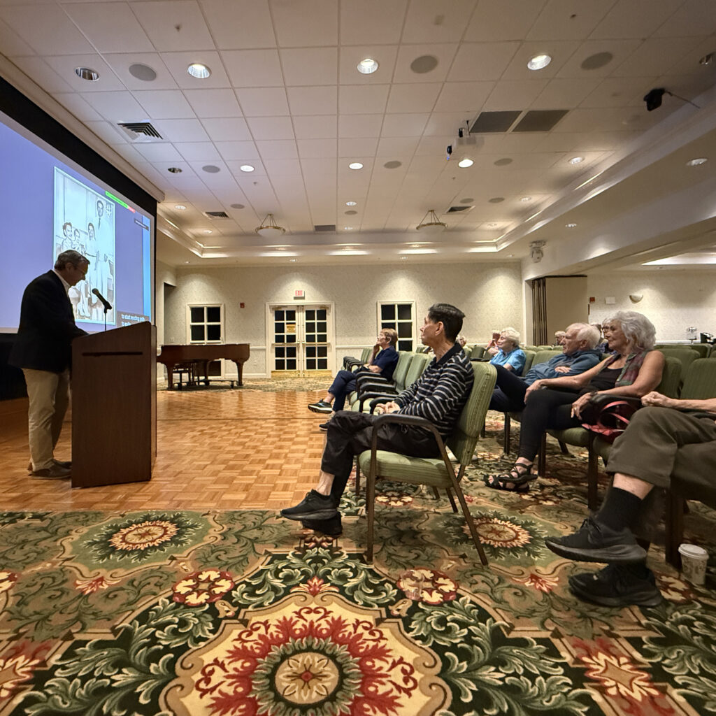 Mario presenting his Florida Humanities program, Across the Florida Straits to citizens of the City of Pembroke Pines. FL